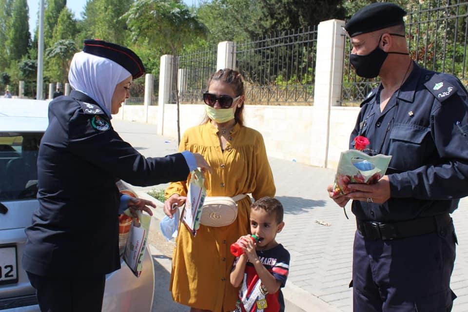 سرايا - اطلقت مديرية الأمن العام ممثلة بمديرية شرطة شمال عمان ( الشرطة المجتمعية ) مبادرة "عوافي" بهدف توعية المواطنين بضرورة التقيد التام بمعايير السلامة العامة للوقاية من فايروس كورونا ، من خلال ارتداء الكمّامات وتحقيق مبدأ التباعد الاجتماعي.