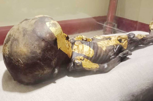سرايا - أدهشت مومياء "الطفل الذهبي" زوار المعرض الأثري "إعادة اكتشاف الموتى"، في المتحف المصري بالتحرير، وسط القاهرة، الذي تستمر فعالياته حتى نهاية الشهر الحالي.