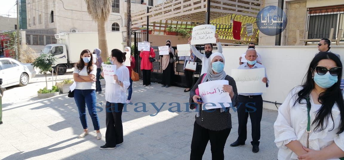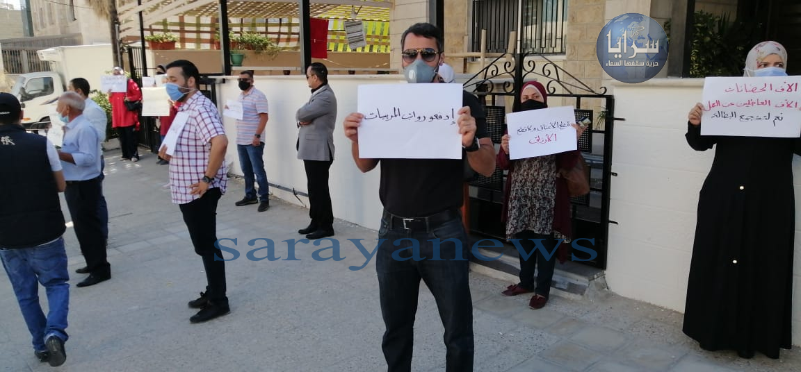 سرايا - نفذ عدد من أصحاب الحضانات في العاصمة عمان، اعتصاما أمام وزارة التنمية الاجتماعية تعبيراً عن غضبهم على قرار تعطيل الحضانات اعتباراً من السبت المقبل وحتى نهاية العام.