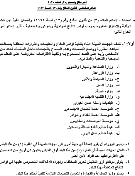 فيما يلي النص الكامل لامر الدفاع رقم 20