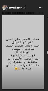 وتابع تامر: "أغانى الألبوم مش هتتأجل وهتنزل زى ما أنا مرتب ليها".