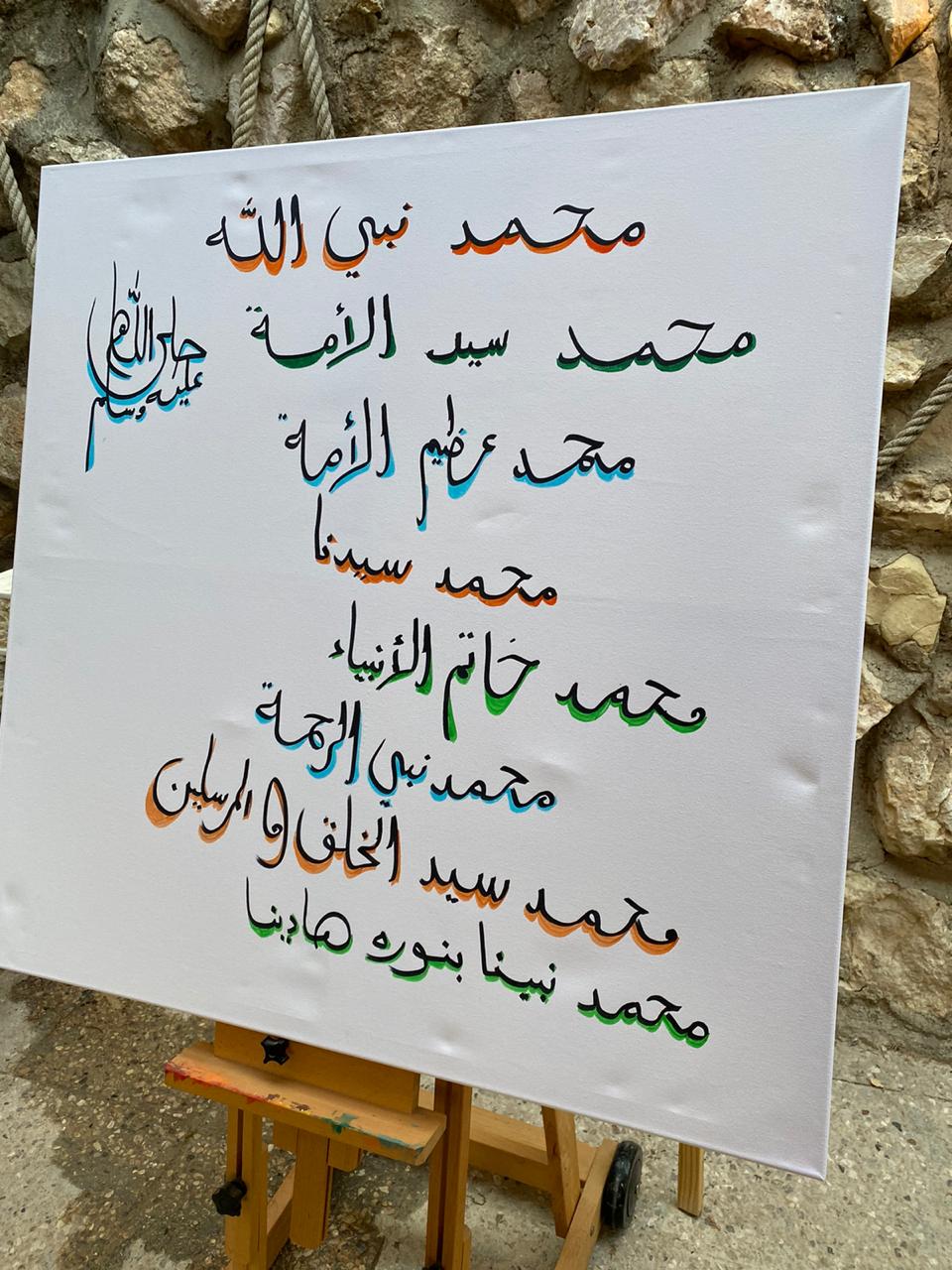 وقدم عدد من المشاركين أعمال رسم لأسم النبي بمختلف الأسماء، وتم خلال الورشه الفنيه عمل جداريه خاصه بذكرى المولد النبوي تبين خصال سيدنا محمد بريشة الاطفال والمشاركين كرساله من المشاركين بأهمية هذه المناسبه الجليليه.