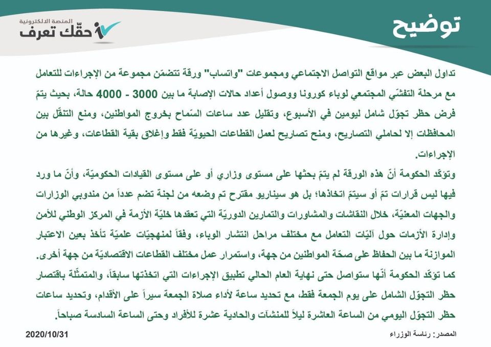 و قالت عبر منصة "حقك تعرف": "هذه الورقة لم يتم بحثها على مستوى وزاري أو على مستوى قيادات حكومية، و تالياً الرد كاملاً: