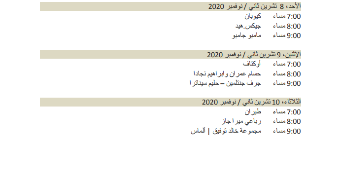 20 فرقة و77 فنان في عروض موسيقية على اليوتيوب من 5 الى 10 نوفمبر/ تشرين ثاني 2020