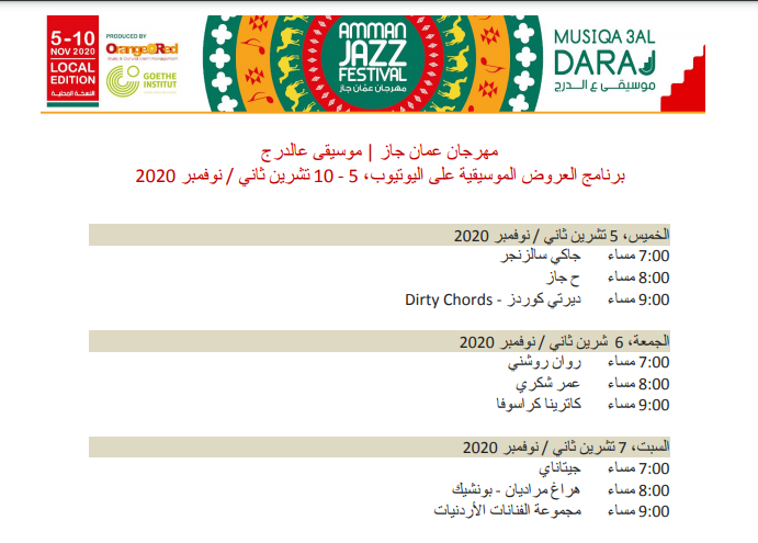 صفحات المهرجان الالكترونية: Amman Jazz Festival Website | Facebook | Instagram | YouTube
