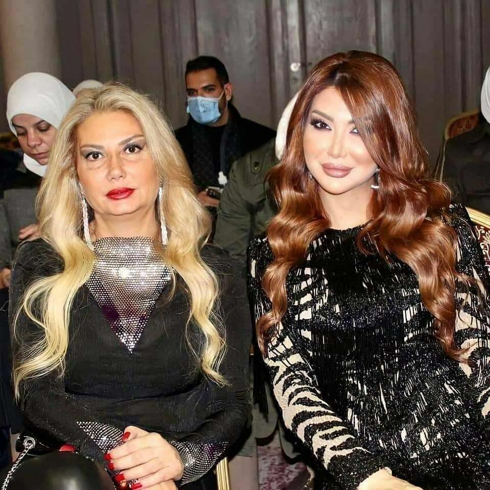 وظهرت النجمة السورية ووالدتها بإطلالتين مختلفتين ولكنهما باللون ذاته الأسود.