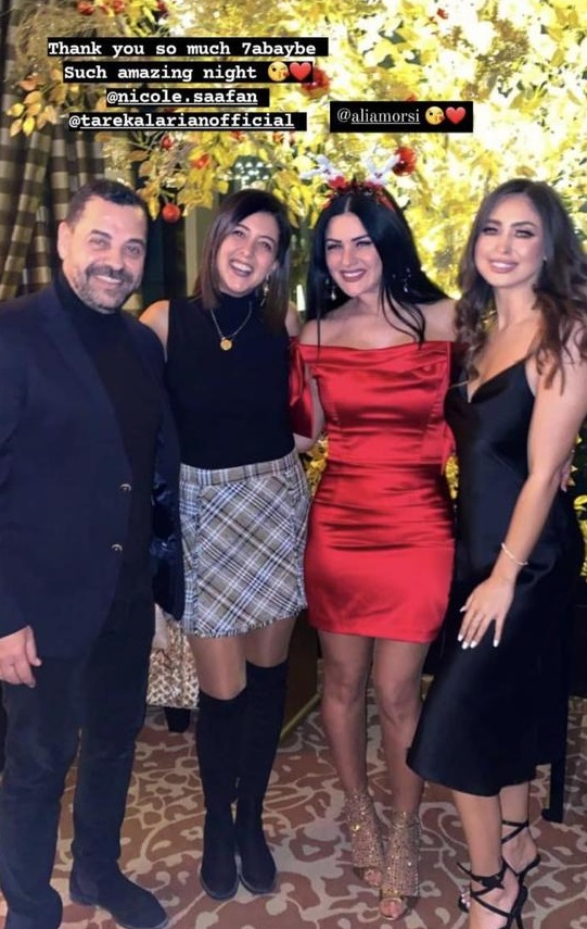 ظهرت نيكول سعفان برفقة العريان لأول مرة بعد شائعة ارتباطهما بمجموعة صور من أحدث ظهور لهما خلال الحفل الذي أقامته بمناسبة احتفالات رأس السنة الجديدة، من بينهما صورة مع نجله عمر وصورة مع الفنان ماجد المصري معلقاً عليها "صديق العمر"، والصورة الأخرى كانت شاركتها الفنانة نسرين إمام عبر حسابها الشخصي على موقع تبادل الصور