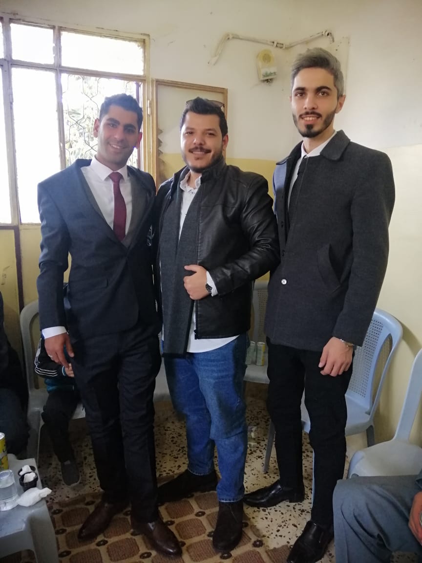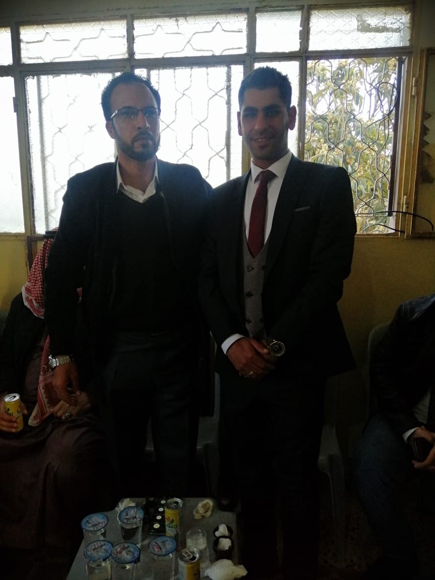 سرايا - يتقدم الصديق موسى الشيخ بأحر التهاني والمباركة للأخ والصديق العزيز محمد أديب الكفاوين.. بمناسبة عقد قرانه على كريمة السيد بشير الكفاوين .. ألف ألف مبارك .. اللهم بارك لهما وبارك عليهما وأجمع بينهما بخير بالرفاء و البنين و البنات