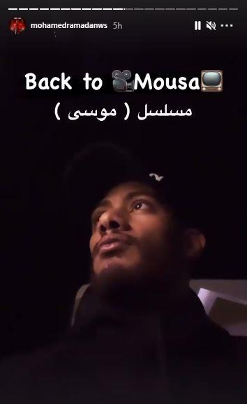ونشر رمضان، صورة له من سيارته الخاصة، عبر خاصية "الإستوري" على "إنستغرام"، وكتب عليها قائلًا: "العودة لتصوير مسلسل موسى".