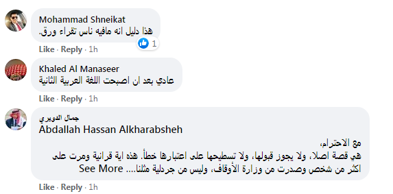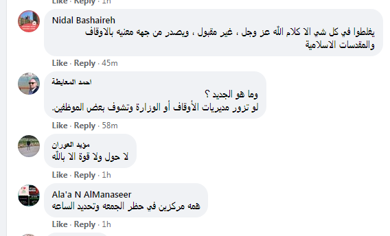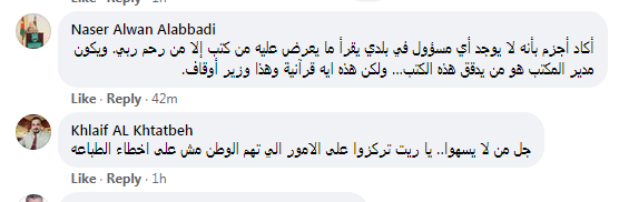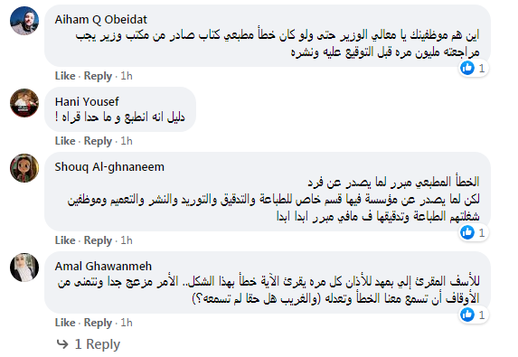 و انتقد الناشطون على مواقع التواصل هكذا خطأ ورد من وزارة الاوقاف، معتبرين ان الخطأ مرفوض بشكل تام في النصوص القرآنية و الأحاديث النبوية.