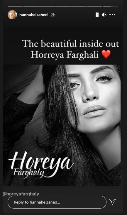 الفنانة حورية فرغلي من ضمن الفنانات اللاتى دعمنها كانت هنا الزاهد التي كتبت عبر استورى حسابها على إنستجرام، قائلة: الجميلة من الداخل والخارج حورية.