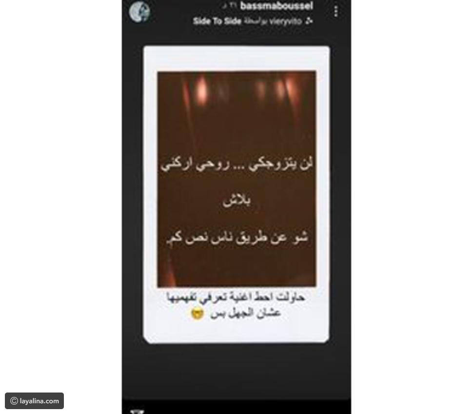 حيث قالت بسمة بوسيلفي رسالتها هذه:" لن يتزوجكي روحني اركني ، بلاش شو عن طريق ناس نص كم".