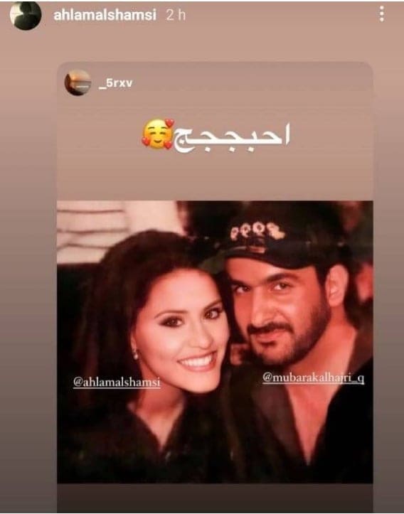 سرايا - فاجأت النجمة الإماراتية أحلام الشامسي، جمهورها بصورة من فترة الشباب جمعتها بزوجها مبارك الهاجري، وذلك عبر خاصية "الستوري" في حسابها "إنستغرام".
