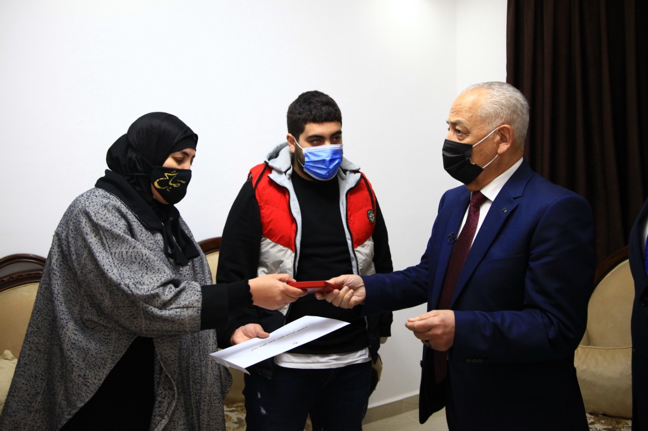 وسلّم رئيس الديوان الملكي الهاشمي، رئيس لجنة متابعة تنفيذ مبادرات جلالة الملك، يوسف حسن العيسوي، مفاتيح المسكنين الجديدين لأسرتي الشابين المستفيدين، تنفيذاً لتوجيهات جلالة الملك الذي وجّه بتأمين مساكن تسهم بتوفير بيئة آمنة وصحية وملائمة لهما.
