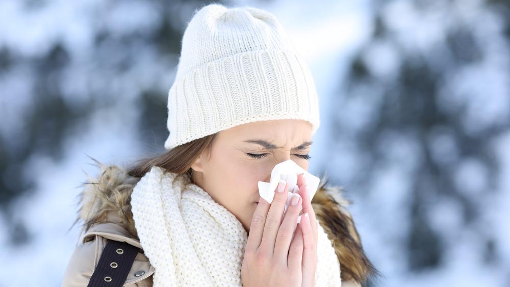 عندما تتعرضين للبرد، يرسل جسمكِ احتياطيًا من الحرارة والطاقة إلى الأعضاء الحيوية، مع تقليل تدفق الدم إلى الأطراف، مثل اليدين والأذنين والأنف. ويشعر أنفكِ بالطقس المتجمد أولاً، لأنّه في الغالب نسيج غضروفي بدون دهون، بالإضافة إلى كونه جزءاً مكشوفاً من الجسم، كما يوضح جرّاحو تجميل الوجه.