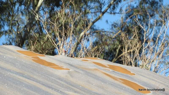 سرايا - رسمت موجة الصقيع التي ضربت الصحراء الجزائرية لوحات ساحرة، التقطها المصور الجزائري كريم بوشطاطة، في صحراء عين الصفراء في جنوب غرب للبلاد.