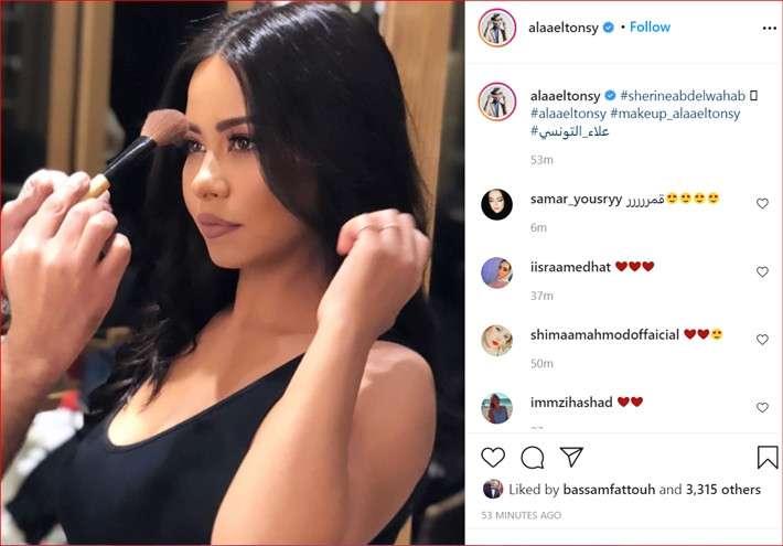 وكان الماكيير علاء التونسي قد نشر مؤخرا صورة حديثة للفنانة المصرية شيرين عبدالوهاب، أثناء وضعه الماكياج لها، وذلك في أول ظهور لها بعد غياب.