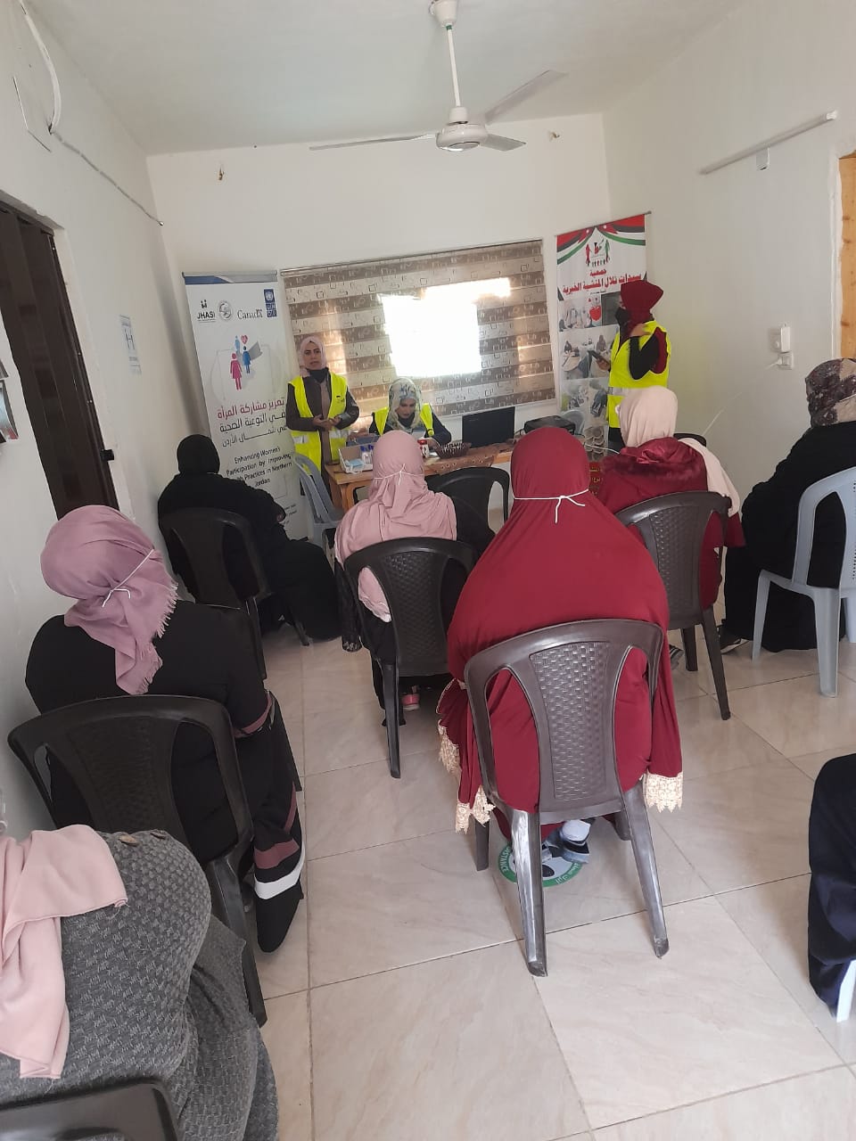 وأضافت الشحيمات بالتنسيق مع مجلس الخدمات المشتركة لمحافظة اربد و المنظمة الالمانية للتعاون الدولي giz أطلق في جمعية سيدات تلال المنشية حملة توعوية، والتي تقوم بها مدربات مشروع العمل مقابل الاجر للمجتمع المحلي و تستمر الحملة لمدة ثلاثة أشهر، تحت عنوان ( طرق الوقاية و التعقيم للحد انتشار فيروس كورونا ).