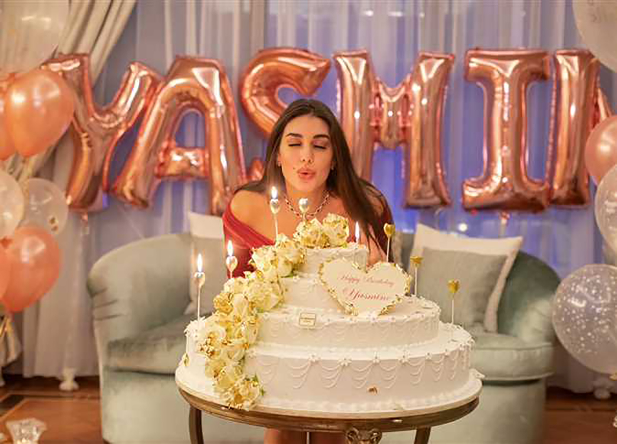 سرايا - احتفلت الفنانة المصرية ياسمين صبري بعيد ميلادها حيث نشرت صورا عبر حسابها الرسمي على تويتر وظهرت «ياسمين» إلى جوار زوجها رجل الأعمال أحمد أبوهشيمة بينما تطفئ شموع تورتة عيد الميلاد المكونة من 4 أدوار دائرية ويعلوها قلب من الحلوى وزينت البالونات منزل ياسمين والتي حملت جملة «عيد ميلاد سعيد..ياسمين» بالانجليزية.