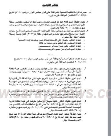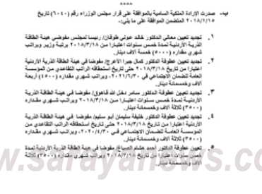 و بحسب الوثيقة، تم تجديد تعيين الدكتور طوقان رئيساً لمجلس مفوضي هيئة الطاقة الذرية الأردنية، لمدة 5 سنوات، اعتباراً من 13/03/2018 برتبة وزير و براتب شهري مقداره 5 آلاف دينار.