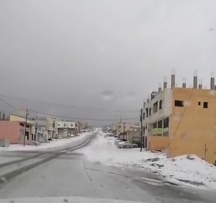 سرايا - شهدت منطقة الرشادية ولواء بصيرة بمحافظة الطفيلة (التي ترتفع 1600 متر عن سطح البحر)، تساقطا للثلوج.