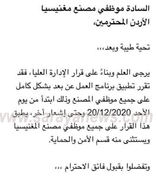 وقال موظفوا الشركة لسرايا أنهم يعانون أصلاً من قبل جائحة كورونا، وخلال الجائحة تم ابلاغهم بتحول للعمل عن بعد، اذ راجعو الشركة ومجلس النواب الذي خاطب وزارة العمل بذلك.