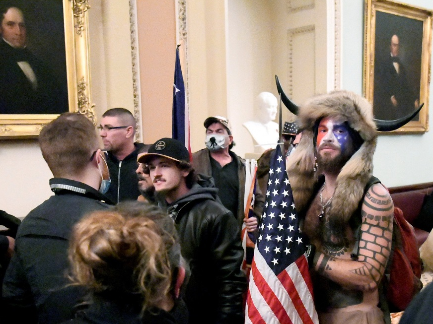 وتم تصوير تشانسلي في 6 كانون الثاني في أعمال شغب الكابيتول وهو ملون الوجه ويرتدي قبعة ذات قرون وبدون قميص. وطبقا لوثائق المحكمة فقد وقف لالتقاط الصور داخل قاعة مجلس الشيوخ وزعم أنه ترك رسالة تهديد على مكتب نائب الرئيس السابق بنس.