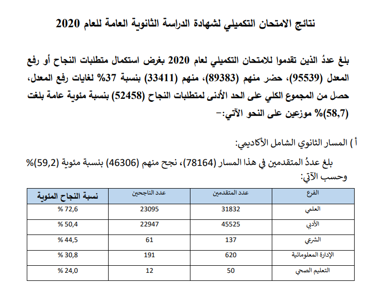 رابط نتائح التوجيهي التكميلي للعام 2020
