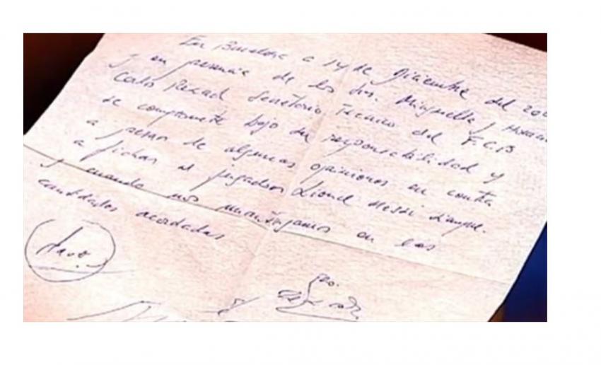 وفي 14 ديسمبر 2000، وقع النادي أول عقد مع الصبي الأرجنتيني، الذي كان حينها لاعباً مغموراً لا يتجاوز عمره 12 عاماً، واللافت في العقد، أنه كان على منديل طعام، وشاءت الأقدار أن يكون «تاريخياً».