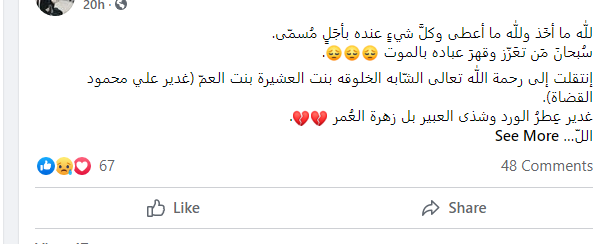 مواقع التواصل تتشح بالحزن على وفاة الشابة غدير القضاة التي كانت تنتظر مولوها الأول .. تفاصيل