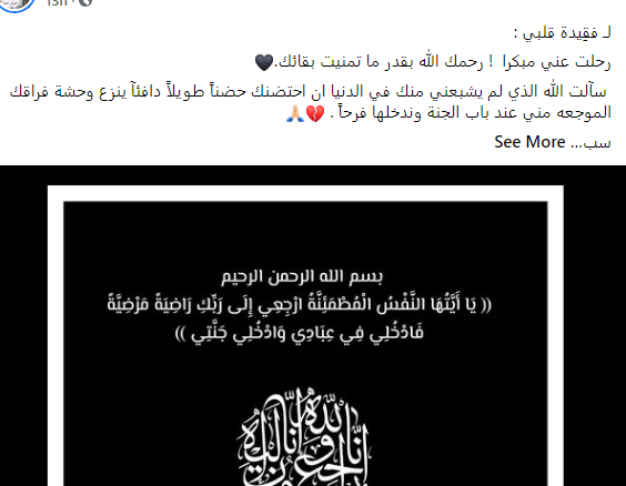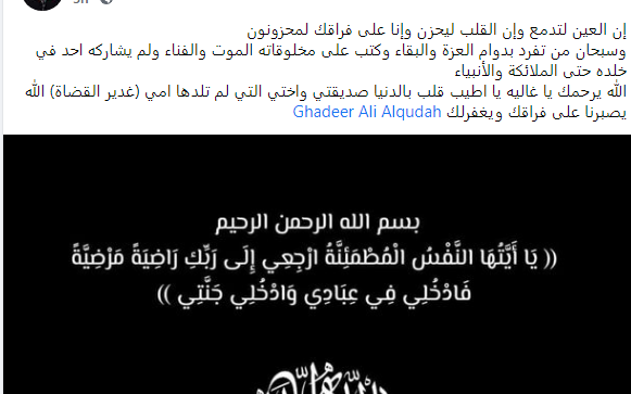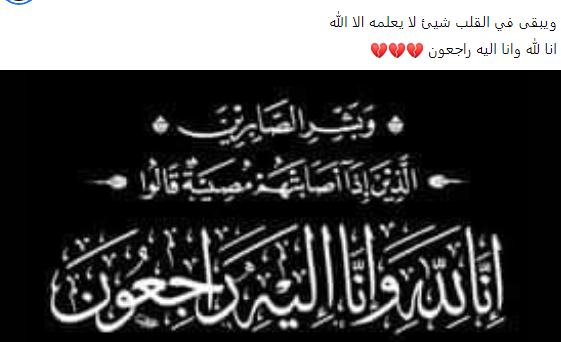 أسرة سرايا تقدم التعازي لذوي الفقيدة سائلين المولى عز و جل أن يلهم ذويها الصبر والسلوان و أن يتغمدها بواسع رحمته.