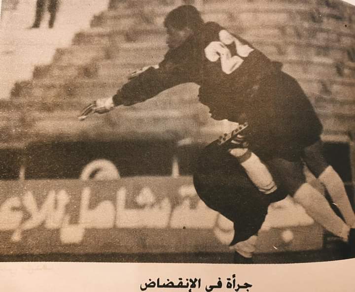 كان يلقي بنفسه أحيانًا منبطحًا على الأرض وأخرى طائرًا في الهواء متحملًا الكدمات وما تتركه من سيل للدماء، فكان لا يخفى على أحد أن موهبة حراسة المرمى هي صفة أصيلة بالغة فيه.