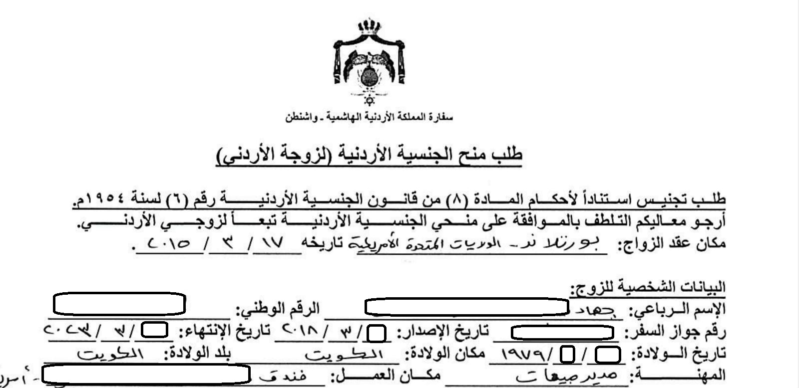 وقد تقدمت تيفاني فليمنج رسمياً بطلب الحصول على الجنسية الأردنية لدى السفارة الأردنية في واشنطن استناداً لأحكام المادة 8 من قانون الجنسية الاردنية رقم 6 لسنة 1954.