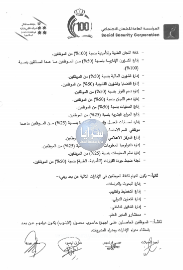 وتفيد الوثائق بأن الإدارة قامت بالتوجيه على إبقاء العديد من الدوائر والاقسام بنسبة دوام 100% دون الأخذ بعين الاعتبار الوضع على أرض الواقع لاسيما من فروع الضمان في المحافظات، حيث تشهد المكاتب اكتظاظاً بالموظفين مما يعرض سلامتهم وأسرهم للخطر.