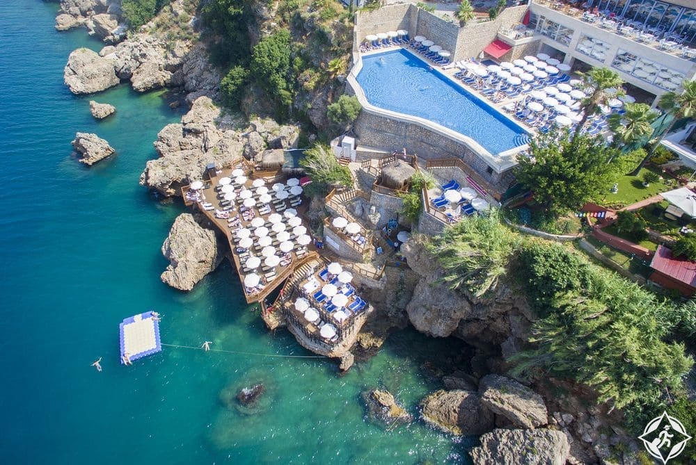 ولعل أحد أفضل الخيارات في هذه المدينة الممتعة هو فندق Ramada Plaza Antalya Hotel ذو الخمس نجوم، والذي يقع على مسافة قصيرة من مركز المدينة القديمة على حافة جرف، مع إطلالة لا تقارن على المناظر الخلابة على المحيط، وتشمل المرافق والخدمات به؛ سبا وحمام سباحة داخلي وخارجي والوصول المباشر إلى البحر.