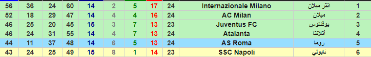 على الجانب الآخر، فشل روما، في الاقتراب من وصافة ميلان، واستقر خامسا في الترتيب بـ44 نقطة.