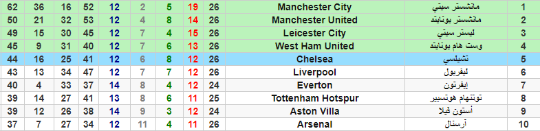 ويحتل مانشستر سيتي صدارة ترتيب البريميرليج برصيد 62 نقطة بفارق نقطتين عن مانشستر يونايتد الوصيف.