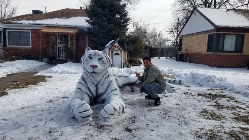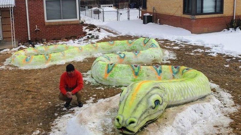 سرايا - بالنسبة لمعظم الناس فإن نحت رجل من الثلج عمل شاق، لكن عائلة في ولاية كولورادو الأمريكية أخذت الأشياء إلى مستوى آخر، بصنع تمثال ثلجي ضخم لثعبان.