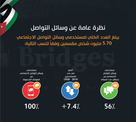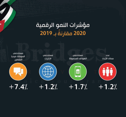 سرايا - أصدرت شركة الجسور للاستشارات الإعلامية تقرير الأداء الرقمي الأول في الأردن، والذي يشمل معطيات وإحصاءات عالمية ومحلية للعام 2020 متعددة المحاور.