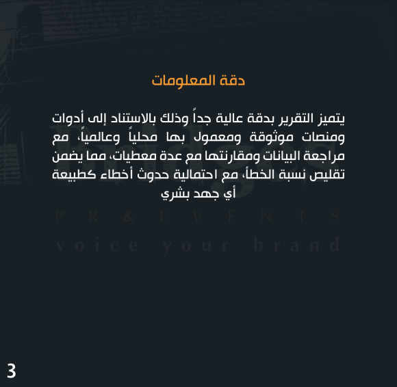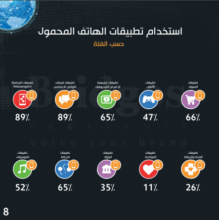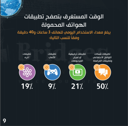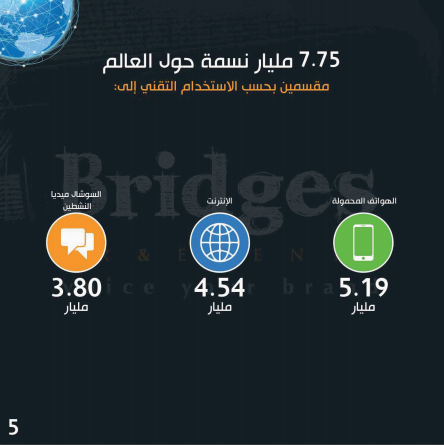 حيث شمل التقرير إحصاءات لمستخدمي وسائل التواصل الاجتماعي وتصنيفهم بحسب المنصات والوقت المستغرق وغيرها، إلى جانب مقارنات وحقائق تفرز معلومات وافية حول النسب المئوية لمستخدمي التقنية – هواتف ذكية، أجهزة لوحية وكمبيوتر محمول وغيرها - بناء على نوع نظام التشغيل وصولاً إلى شبكات الاتصال المحلية المعتمدة ونسب الاستخدام لكل منها.