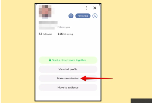 لإضافة مشرف آخر كل ما عليك فعله هو الضغط على صورة الشخص الذي يناقشك في الغرفة واختر (اجعله مشرف الجلسة) Make a Moderator.