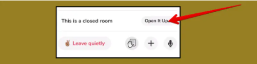 ملاحظة: ضع في اعتبارك أنه يمكنك بدء غرفة خاصة وجعلها عامة في أي وقت من خلال النقر على زر Open It Up في أسفل الشاشة.
