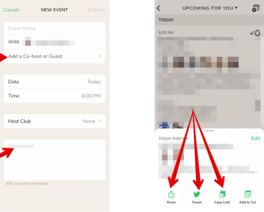 الخطوة الأخيرة هي إضافة وصف للحدث، يمنحك تطبيق (Clubhouse ) ما يصل إلى 200 حرفًا لوصف حدثك حتى يتمكن المتابعيين من الحصول على التفاصيل إذا كنت تريد ذلك.