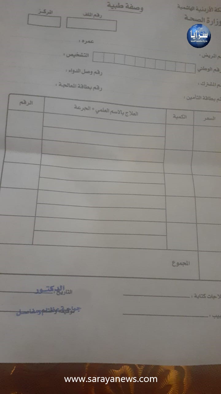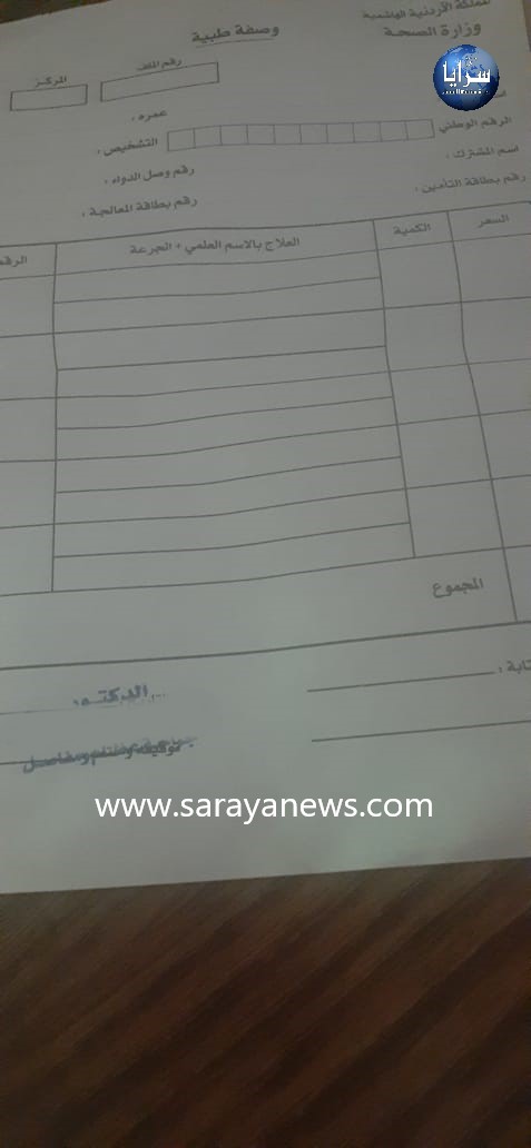 سرايا - أحمد الجراح - حصلت سرايا على وثائق تبدو أنها وصفات طبية مختومة وفارغة المحتوى، باسم طبيب مختص بجراحة العظام والمفاصل في إحدى المستشفيات الحكومية في إقليم الشمال، بين يدي العديد من المراجعين.