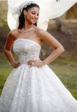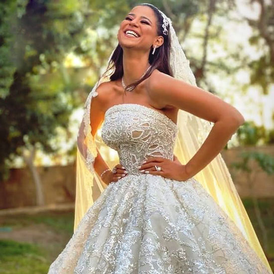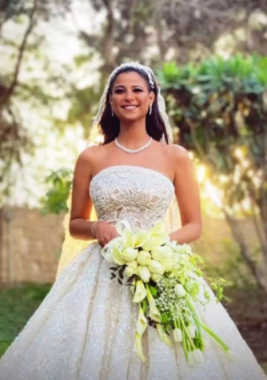 وعفوية دينا داش في حفل زفافها ليست الأمر الوحيد الذي جعلها تتصدر محركات البحث، وإنما ظهرت العروس بإطلالة ساحرة حيث ارتدت فستان أبيض بدون حمالات "سترابلس"، واعتمدت على تسريحة شعر ملموم من الأمام بتاج رقيق، كما استخدمت طرحة شيفون طويلة منحتها طلة تشبه طلة الأميرات والملكات.