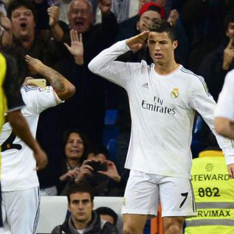 من أشهر احتفالات كريستيانو رونالدو، ما قام به في عام 2013 حين كان في ريال مدريد، حيث أدى التحية العسكرية على طريقة الجنود، وذلك بعدما سجل 3 أهداف "هاتريك" في مرمى فريق إشبيلية.