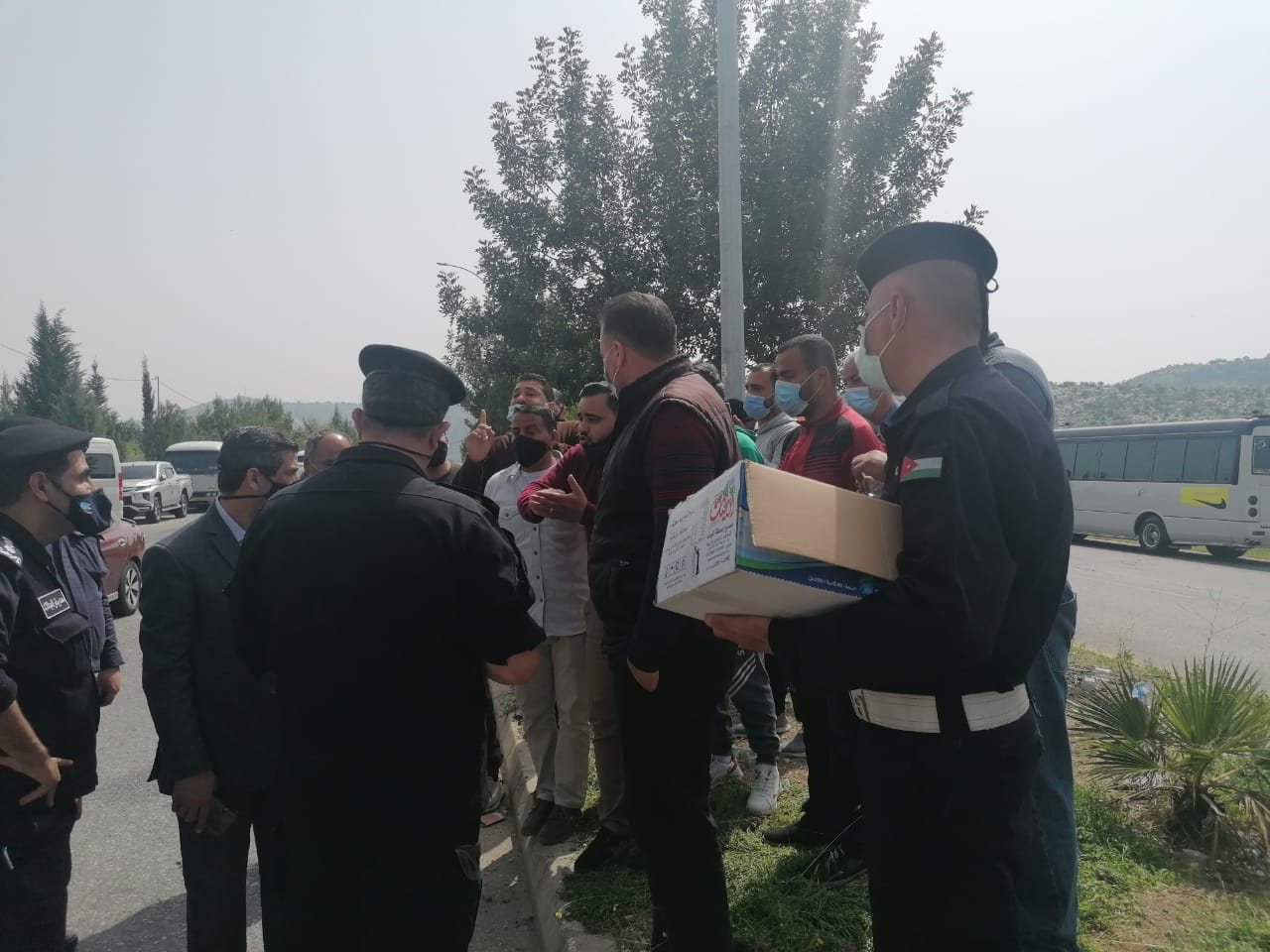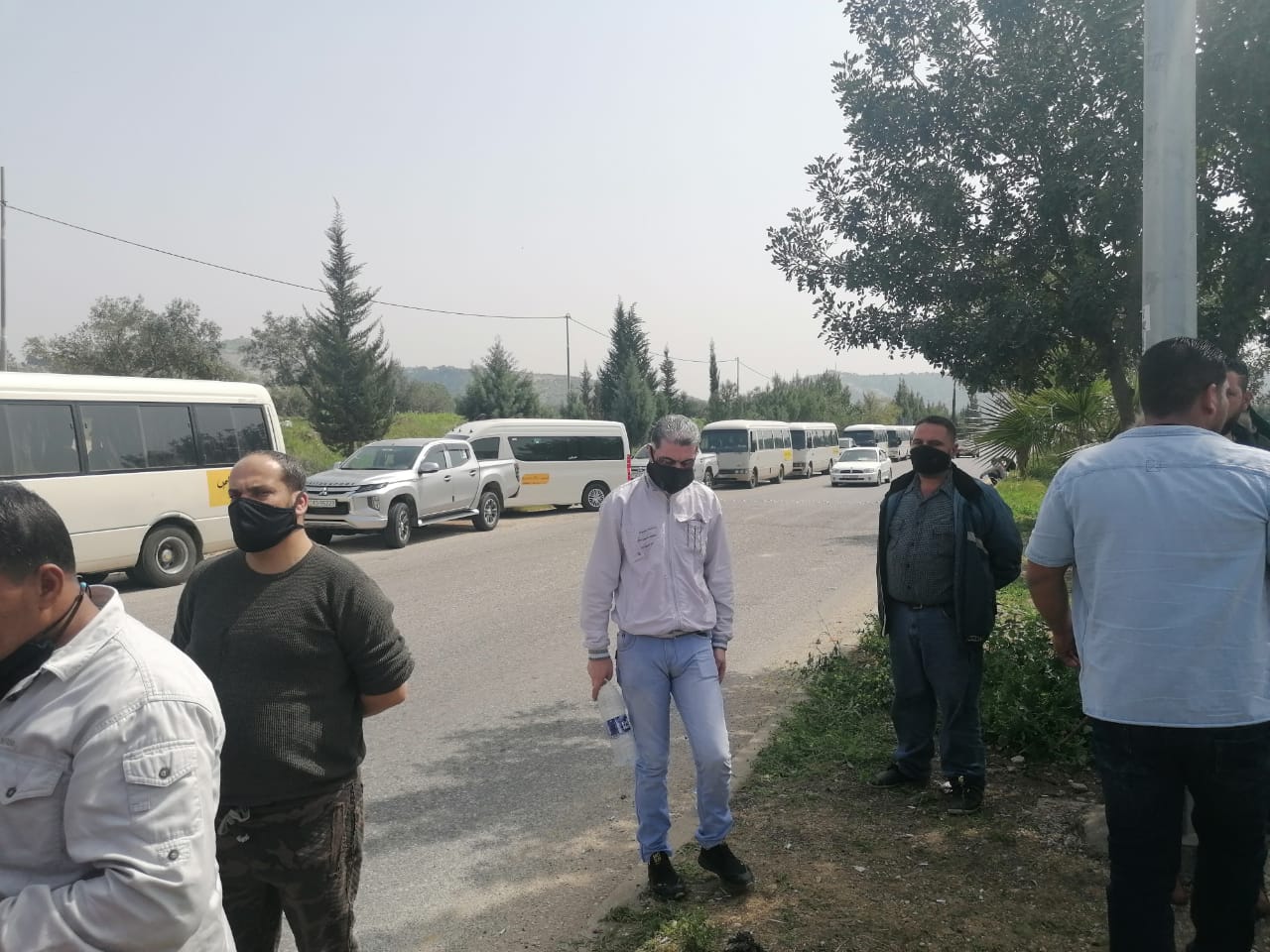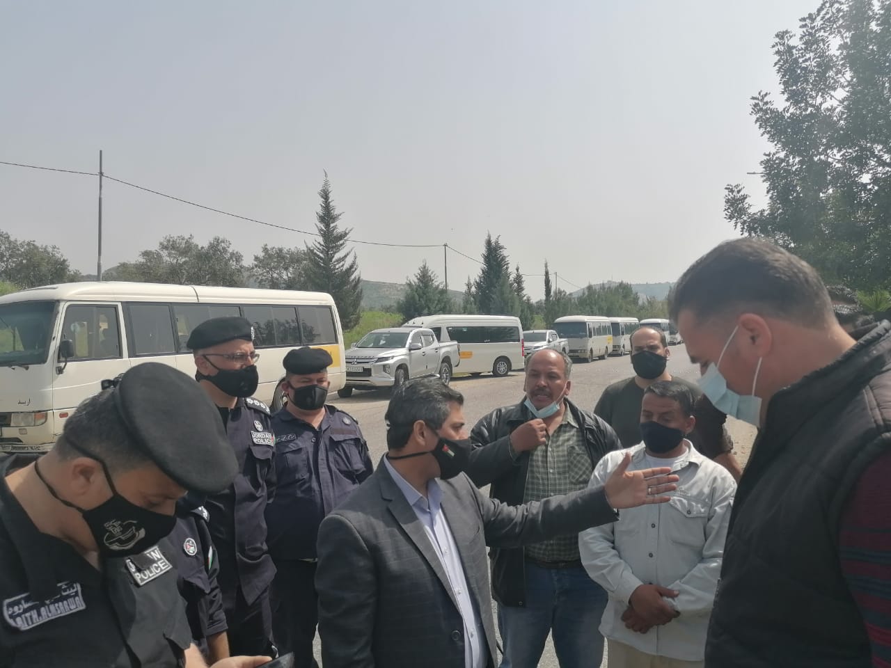 وتجمع عدداً من سائقي الباصات أمام محطة وادي العرب غرب مدينة اربد مطالبين الحكومة بالتراجع عن قرارها الذي اوصفوا بالمجحف بحقهم.