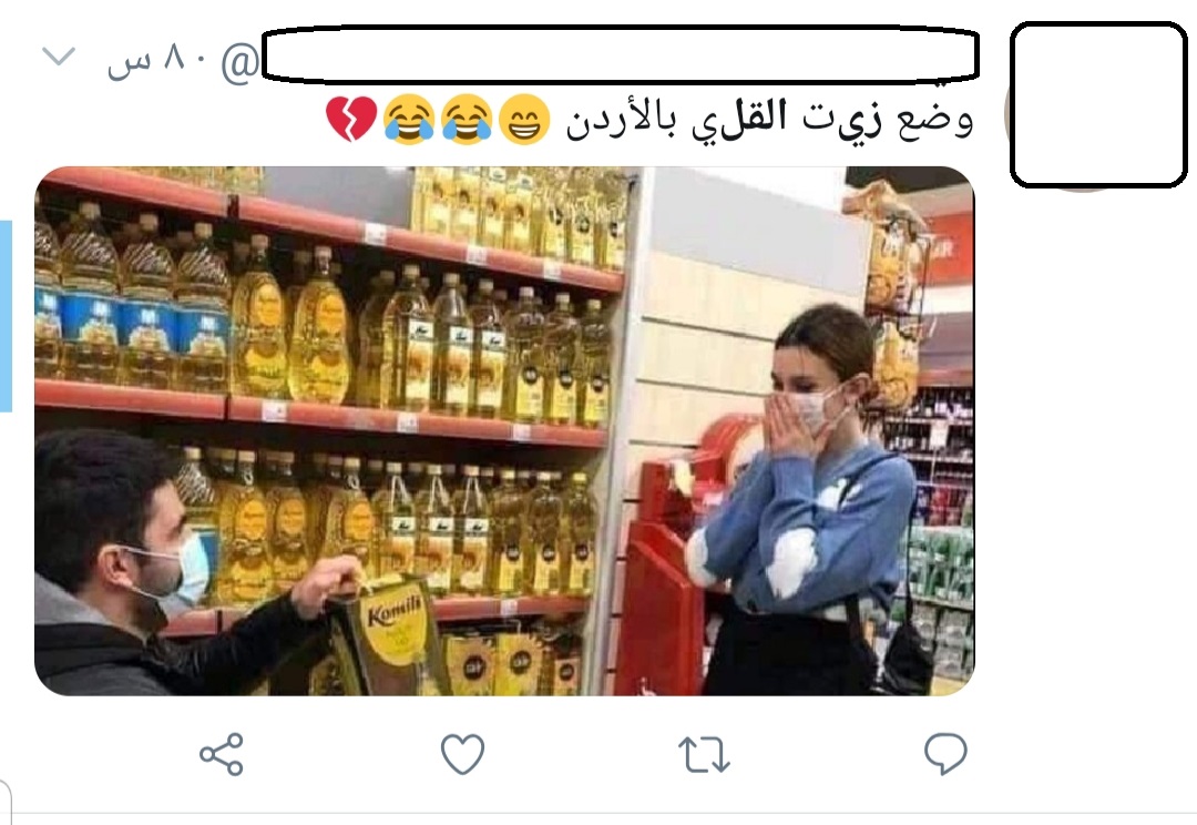 سرايا - أثار ارتفاع أسعار "الزيت" في الأردن غضبا شعبيا واسعا، انعكس على تعليقات وتغرديات نشطاء مواقع التواصل، حيث عبروا عن استيائهم بأسلوب ساخر، عن هذا الارتفاع غير المبرر.