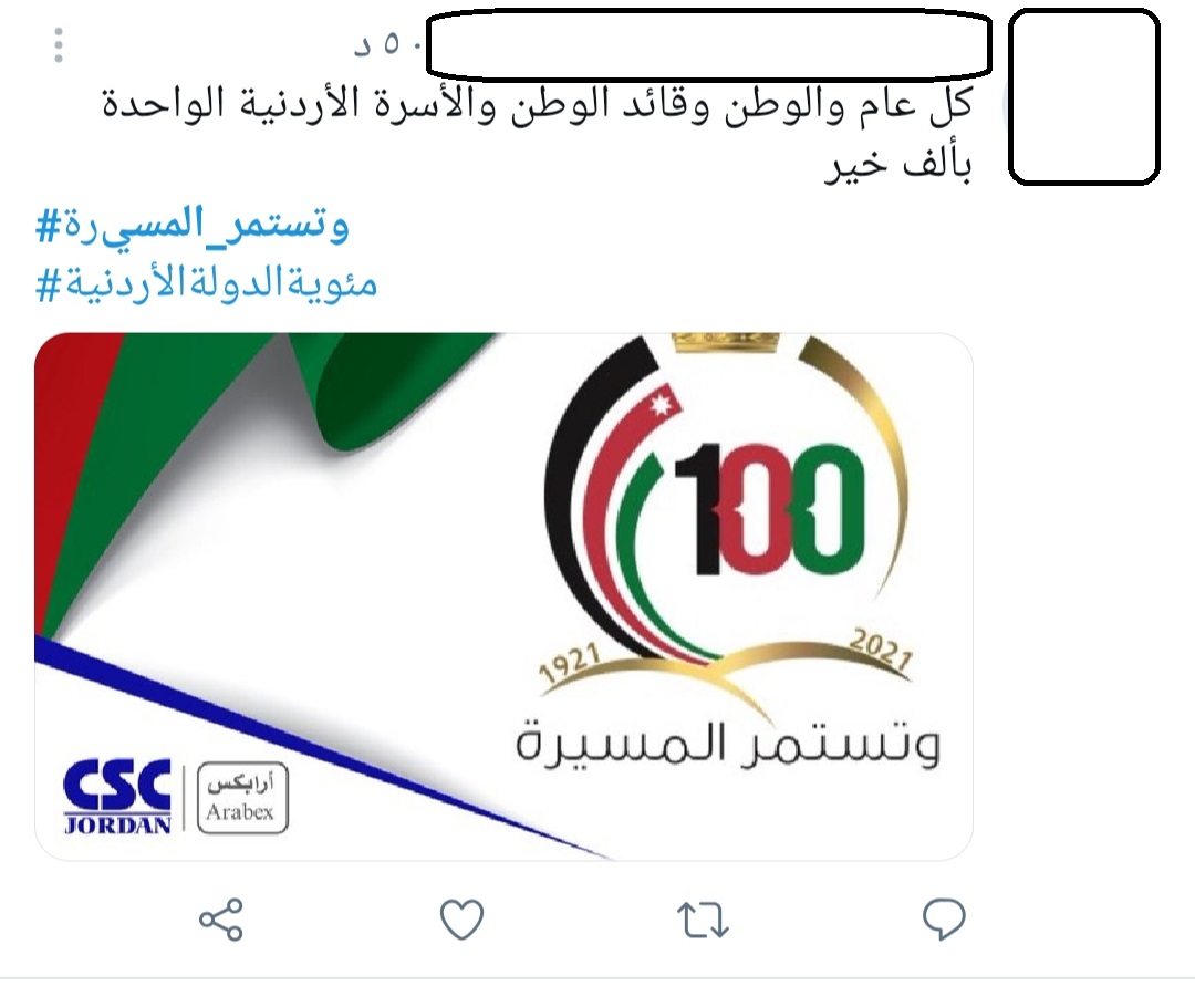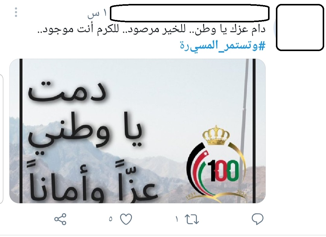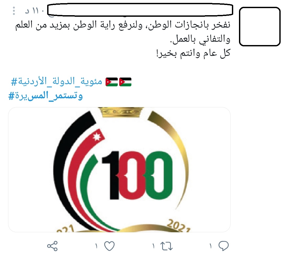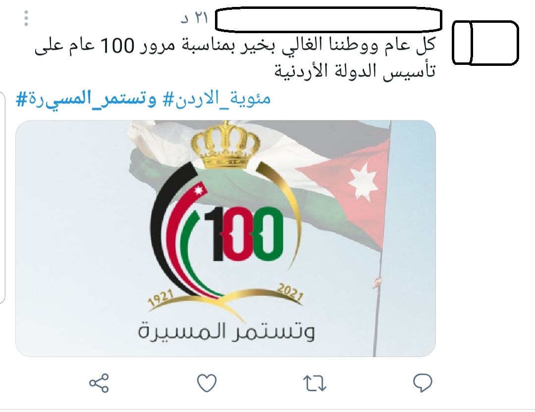 سرايا - توشحت مواقع التواصل الاجتماعي صباح اليوم الأحد بالعلم الأردني الذي علا سارية الشموخ منذ 100 عام، احتفالا بمئوية دولتهم.