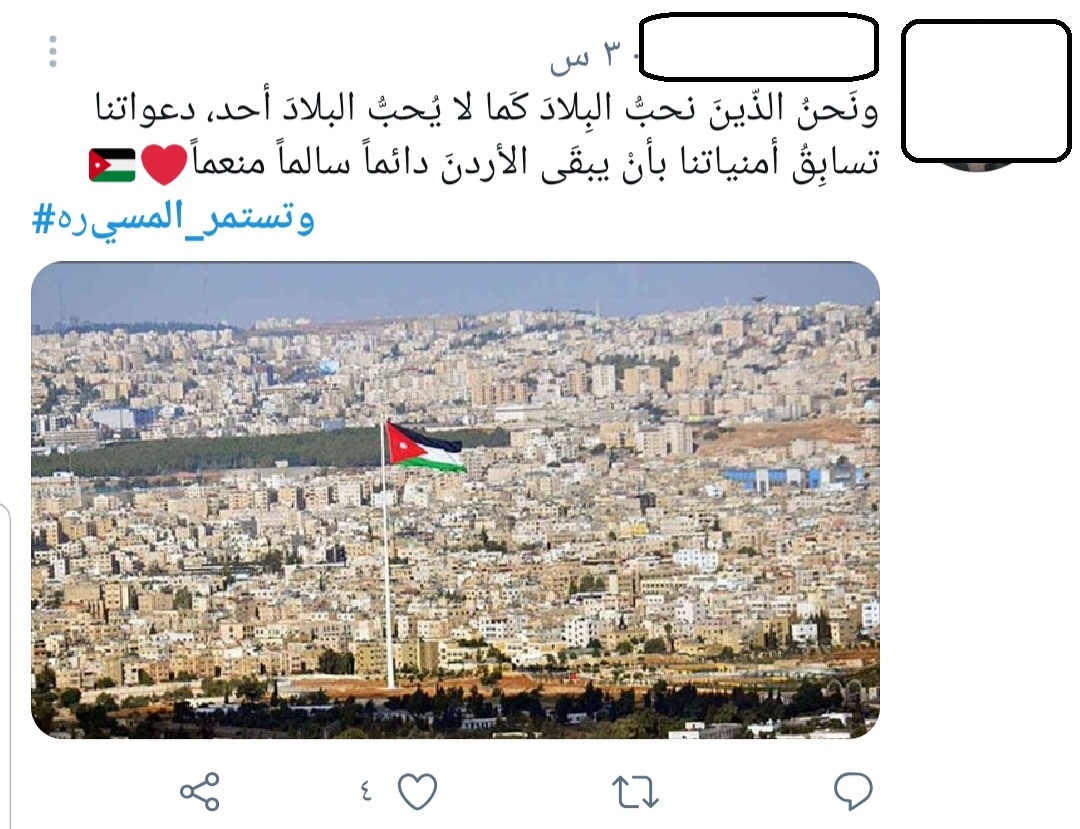 كما وشارك الأردنيون مناسبتهم أشقائهم من جميع البلدان العربية، بالدعاء باستمرار هذه المسيرة في ظل الحكم الهاشمي، الذي جعل من الأردن بلدا لامعا بالحب والسلام والاحتواء بين جميع دول العالم.